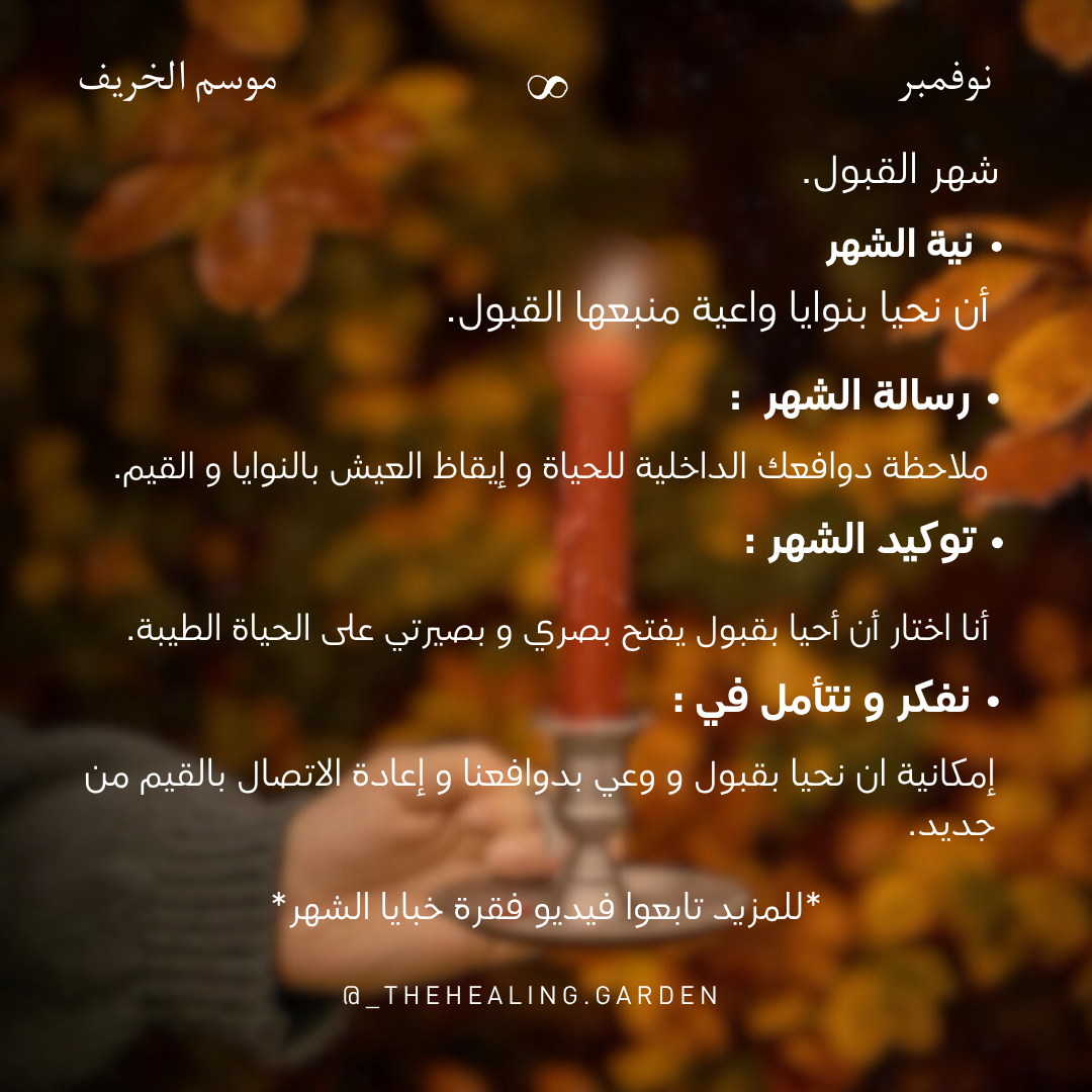 بدءً من نية الشهر و عبوراً بالممارسات و وصولاً لتذكيرك بالمواضيع التي سنغطيها هذا الشهر