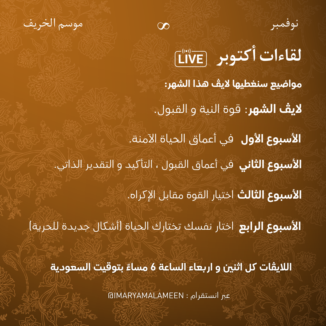 تجمعنا اللقاءات المباشرة كل اثنين و اربعاء الساعة السادسة بتوقيت السعودية